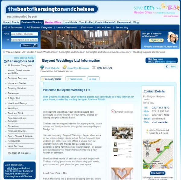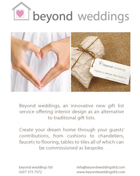 Beyond Weddings offers Kensington and Chelsea couples an inspired alternative to the traditional wedding gift list. Instead of choosing from a traditional selection of gifts, your guests can select special items for your home and contribute to a new interior design or a newly refurbished home, all under the creative eye of an experienced interior designer.